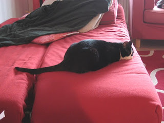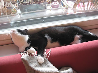 Ideoin uuden kuvion, tuon kruunun. Jos joku semmoisen tahtoo tassu pystyyn. Toinen sydän on menossa Tanjalle, toinen Riitalle kuten myös kissa. Onko sopivat? Heijastinkangas alkaa olla loppu, pitänee sitäkin ostaa. :D