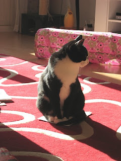 Siis ihan kuin meillä! Olen juuri bongannut viime viikolla kissoja patalapuilla (pöydillä,öh), sanomalehdillä ja paperiarkeilla. Vetääkö ne kissoja puoleensa?