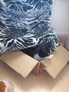 Annilla on aina joku boksikausi. Se tykkää maata noissa ja pureskella reunoja. Ehkä näin ilmojen lämmetessä laatikko on jotenkin viileämpi? :D