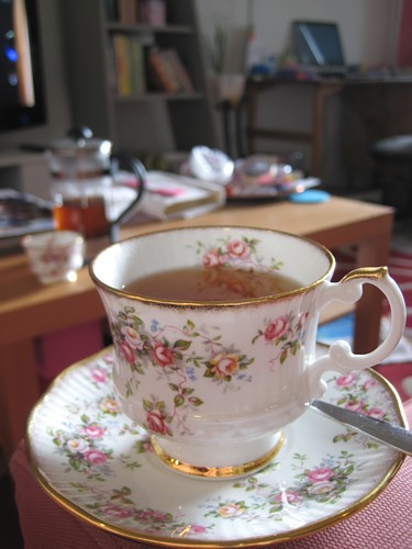 Ihanaa iltapäiväteetä olisin tänään kaivannut, niin kiireinen päivä oli. Tämä kuva on parin päivän takaa. Miten hyvältä tee maistuikaan kauniista kupista. Tämä astiasto on ollut pitkään kaapin perällä, mutta nytpä kaivoin kupin, alusen ja sokerikon esiin.