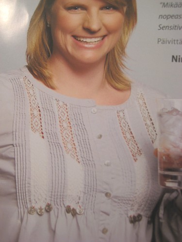 VastaaPoistaUuf. Tuo ensimmäinen kuva on kyllä jo todella hämärä, vaikka lopputuloshan on toki sama. Jos se on osa paitaa, se näyttää siltä, että rintsikat vilkkuu läpi eli mauttomalta ja jos ne ovat rintsikat, se näyttää mauttomalta...