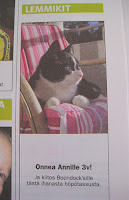 VastaaPoistaItseasiassa Aamulehdessä on viikottain lemmikkejä, Anninkin alta löytyy kaksi koiraa. Mutta onhan tuo aika spesiaalia. Eipä olisi tullut laitettua tuota ellen olisi saanut sellaista ilmaiskuponkia. :)