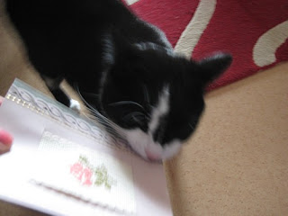 Annikin tykkäsi kovasti, puskemisen lisäksi piti oikein purasta korttia. ;)