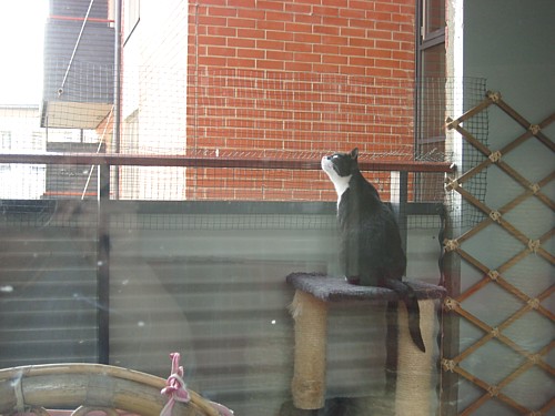 Verkko ei ole hirveän korkea, mutta Annilla on ennenkin mennyt matala verkko. Täytyy katsella tyytyykö Anni kurkkimaan tuosta kaiteiden raosta vai alkaako nousemaan verkkoa vasten. Korotuspala löytyy kyllä.